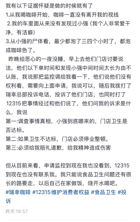 事实上,这不是瑞幸咖啡第一次因为“异物”问题出事了。