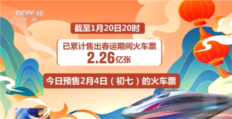 记者从铁路12306科创中心了解到,截至20日20时,已累计售出春运期间火车票2.26亿张。