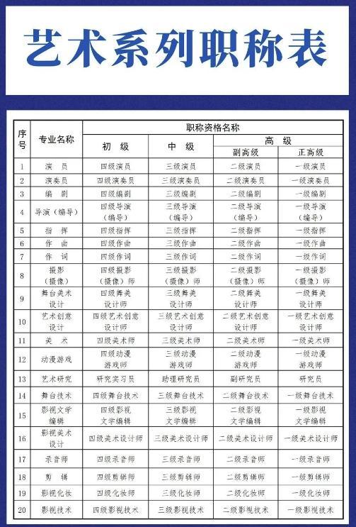 “文艺陕西”微信公众号上公布的艺术系列职称名称。