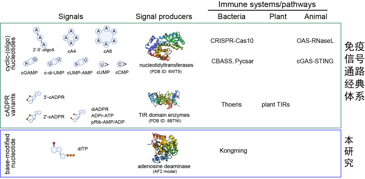 研究显示,“孔明系统”广泛存在于各类细菌中,其模块化结构(核心KomB-KomC搭配可变KomA)提示自然界可能存在更多未知的核苷酸信号系统。该发现不仅为细菌免疫研究提供新方向,其特异性识别dITP的特性更具备医学应用潜力:未来或可开发便携式核苷酸检测工具,助力遗传代谢病(如ADA缺乏症)诊断及抗癌药物疗效监测,突破现有检测技术依赖大型仪器的局限。