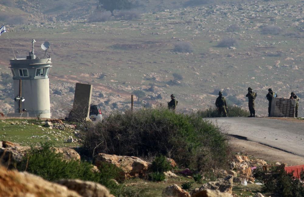 2月4日,以色列士兵在位于约旦河西岸北部城市杰宁附近的泰亚西尔检查站执勤。新华社发(尼达尔·艾仕塔耶摄)