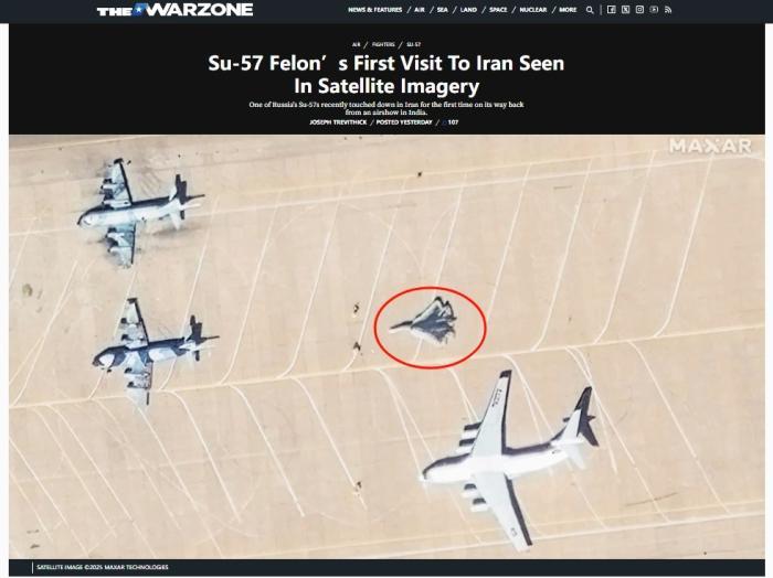 卫星图片显示苏-57在伊朗机场停留。图/美国“战区”网站