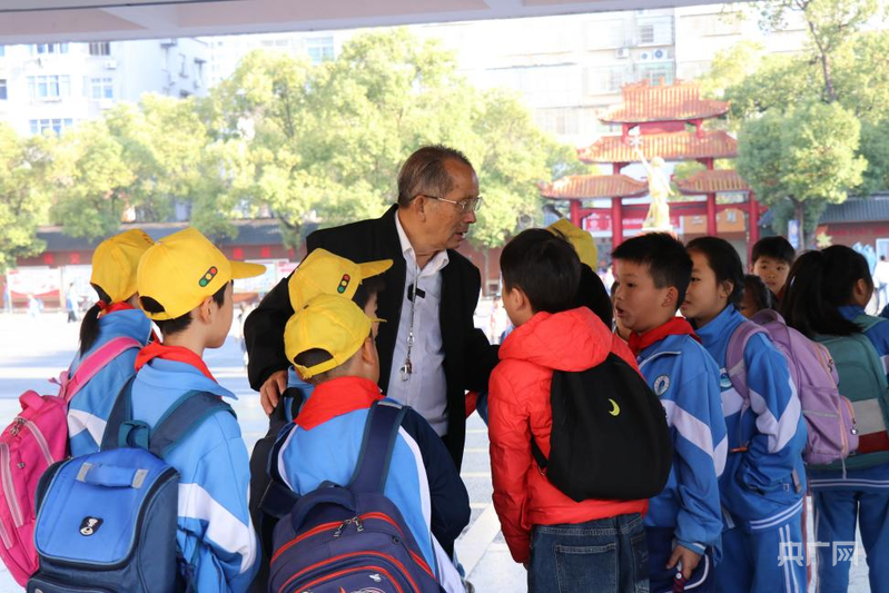 黄梅生给孩子们讲解蔬菜种植知识(央广网记者 刘培俊 摄)