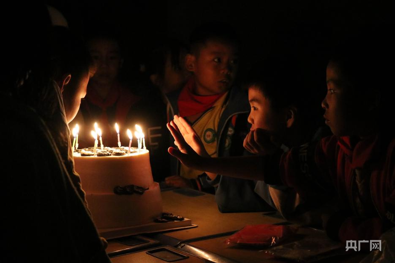 2024年11月9日晚上,孩子们点燃生日蜡烛,准备给黄梅生一个惊喜(央广网记者 刘培俊 摄)