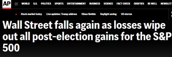 综合美媒报道,当地时间3月4日,美国对加拿大和墨西哥加征25%关税的措施生效,加剧市场担忧。当天,美股标普500指数一度大跌2%,抹去了2024年11月5日美国大选日以来全部涨幅。