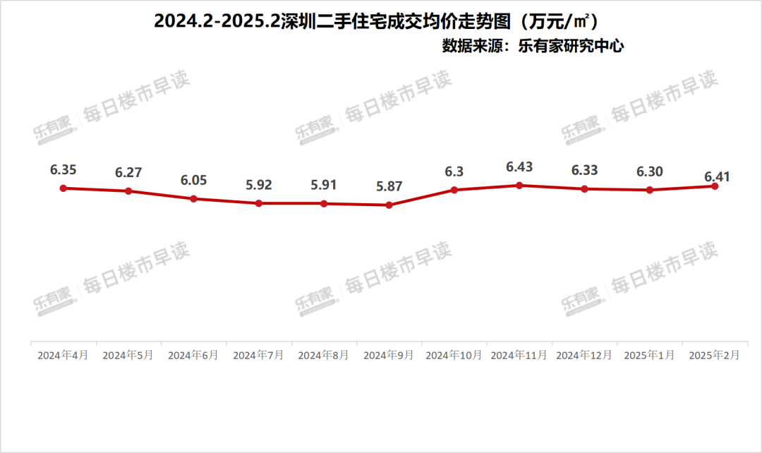 整体来看,深圳房价处于稳定状态,以有“楼市晴雨表”之称的二手房价格为例,从2024年的10月开始,深圳二手房成交均价就已经回升到6万元/平方米以上,且都在6.35万元/平方米左右浮动。