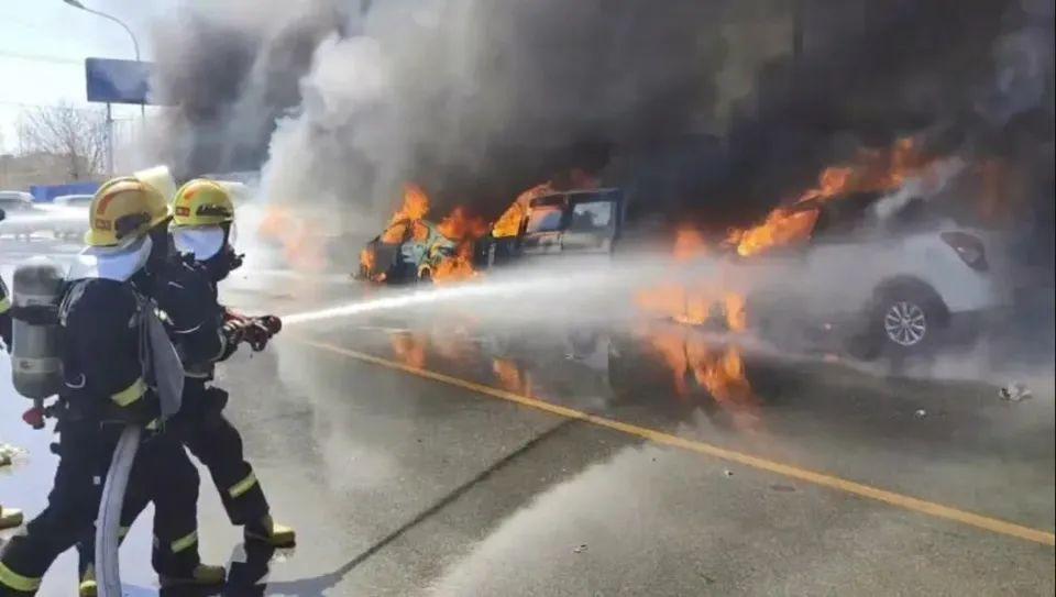 3月30日中午时分,北京朝阳区嘉创路与无名路交叉口南侧发生火情,路侧停放的多辆汽车猛烈燃烧,浓烟滚滚。朝阳区消防救援支队接到119指挥中心调度命令后,立即调派消防救援力量前往处置,同时,调派就近村和社会单位的微型消防站工作人员携带灭火器材赶赴现场进行初期警戒。消防救援人员到场后迅速拿出水枪将火彻底扑灭。