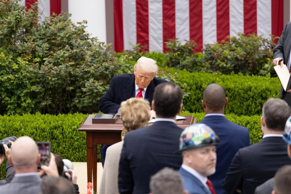 4月2日,美国总统特朗普在华盛顿白宫签署关于所谓“对等关税”的行政令。新华社记者 胡友松 摄