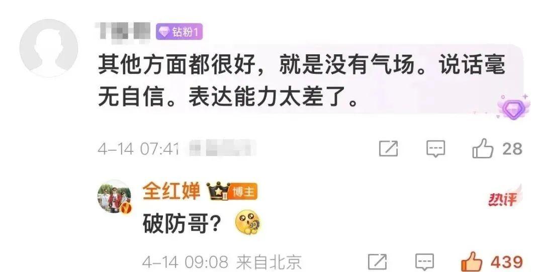 一网友在评论区留言,点评其“说话毫无自信,表达能力太差”,全红婵直接回怼:破防哥?