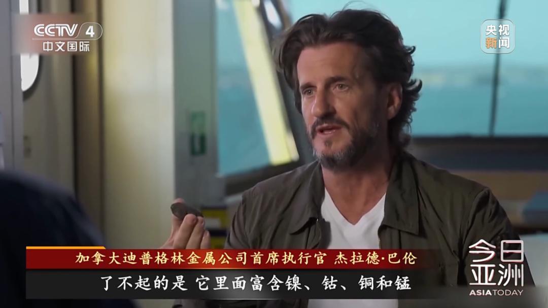 加拿大迪普格林金属公司首席执行官 杰拉德·巴伦:电动车电池(所需的元素)都在这块石头里,它其实是一块美丽的多金属结核。了不起的是,它里面富含镍、钴、铜和锰,而这些正是制造电池所需的东西。