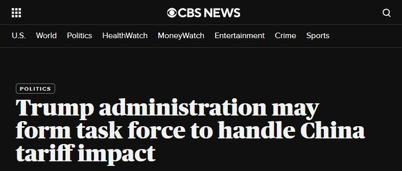 当地时间4月18日,美国哥伦比亚广播公司报道称,多名消息人士透露,由于特朗普政府对中国商品加征的畸高关税将导致供应链危机,特朗普政府内部已开始讨论组建一个工作组,以便在未能与中国政府谈判取得突破的情况下紧急处理这些问题。