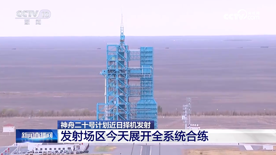 神舟二十号船箭组合体已于本月16日转运至发射区,计划将于近日择机发射。今天(4月20日),发射场区组织各单位展开全系统合练。