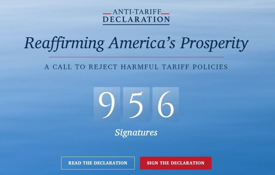 截至美东时间4月19日晚,已有956人签署这份“反关税宣言”。