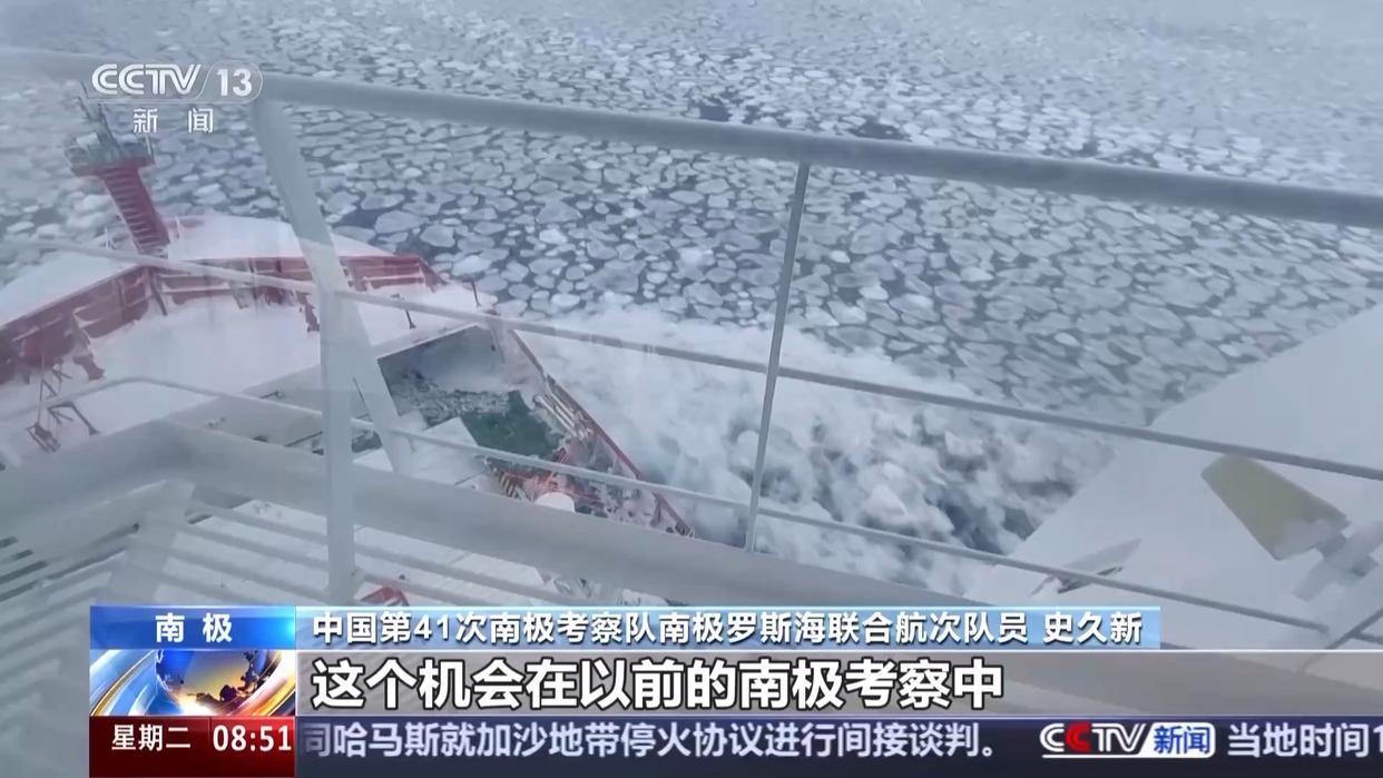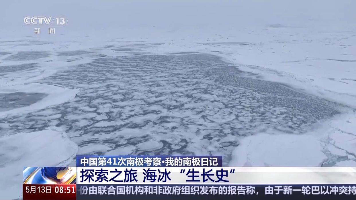 总台央视记者 王楠:这里是“雪龙2”号极地科考破冰船。今年3月下旬,我们在新西兰完成补给后,重新返回南极的罗斯海区域。一路从北向南,随着温度变化,我们看到了海面上不同样态的海冰,当我们抵达南纬75度附近的罗斯海特拉诺瓦湾时,放眼望去只有茫茫冰原。虽然说都是海冰,但是海冰中也包含了不少神奇的“密码”。
