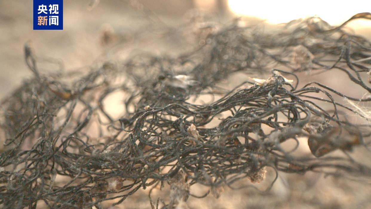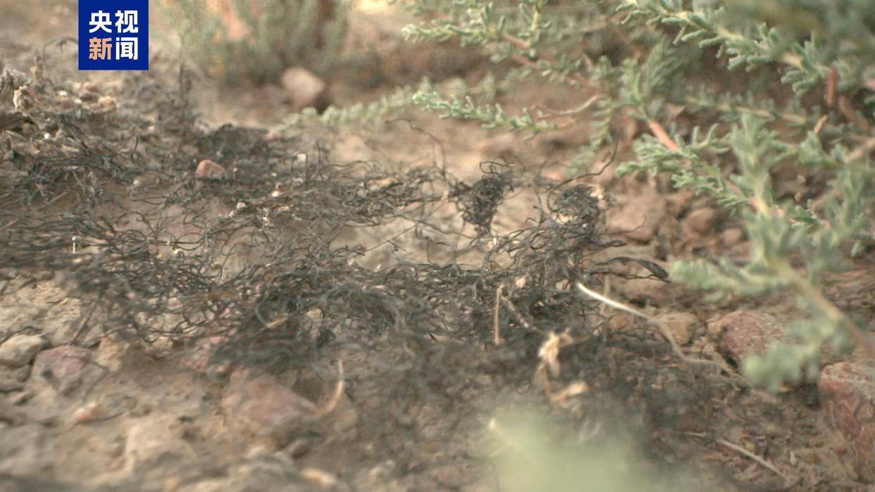 发菜在我国主要分布于西北地区的干旱和半干旱区域。作为一种藻类植物,发菜附着在地表上呈团状缠绕生长,干燥时为棕黑色,看起来和头发一样,故得名“发菜”。据介绍,此次发现的野生发菜群落结构完整,生长状态良好。