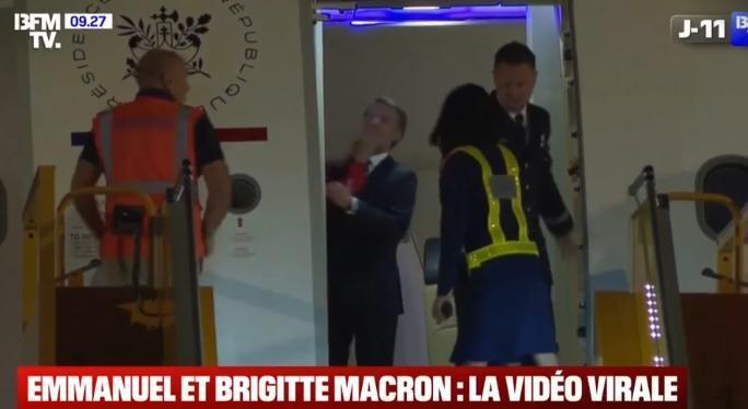 法国RMC电台报道称,视频显示布丽吉特的手疑似“打到”马克龙的脸。爱丽舍宫对此表示否认,强调那是总统夫妇的“亲密时刻”。