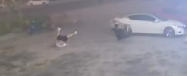小伙被大风掀翻,图源:视频截图