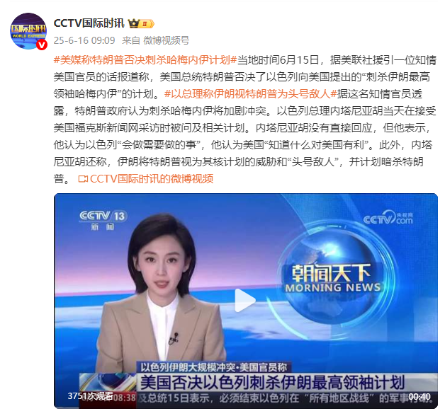 当地时间6月15日,据美联社援引一位知情美国官员的话报道称,美国总统特朗普否决了以色列向美国提出的“刺杀伊朗最高领袖哈梅内伊”的计划。据这名知情官员透露,特朗普政府认为刺杀哈梅内伊将加剧冲突。以色列总理内塔尼亚胡当天在接受美国福克斯新闻网采访时被问及相关计划。内塔尼亚胡没有直接回应,但他表示,他认为以色列“会做需要做的事”,他认为美国“知道什么对美国有利”。此外,内塔尼亚胡还称,伊朗将特朗普视为其核计划的威胁和“头号敌人”,并计划暗杀特朗普。