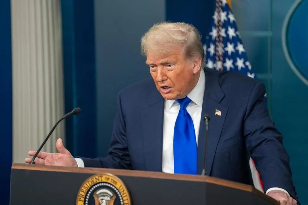 6月27日,美国总统特朗普在华盛顿白宫出席记者会。新华社记者 胡友松 摄