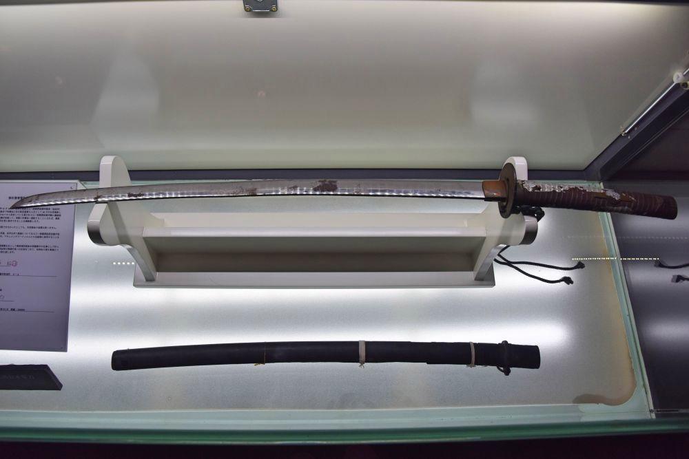 侵华日军第七三一部队罪证陈列馆展出的一把奖励解剖技师的军刀。新华社记者 杨思琪 摄