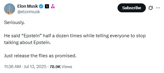 本月8日,在宣布成立“美国党”仅3天后,马斯克便就“爱泼斯坦案”抨击了特朗普,并确认“美国党”将把曝光“爱泼斯坦案”文件作为优先事项。他发帖称,“如果特朗普不公布爱泼斯坦相关文件,怎么能指望人们对他有信心?”