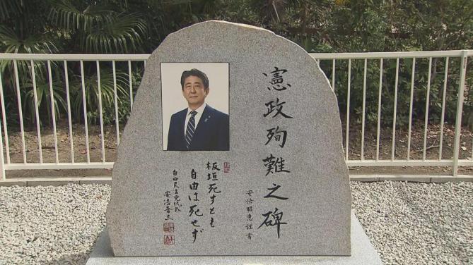 设置在大阪一神社的已故日本前首相安倍晋三的“显彰碑”。图自日媒