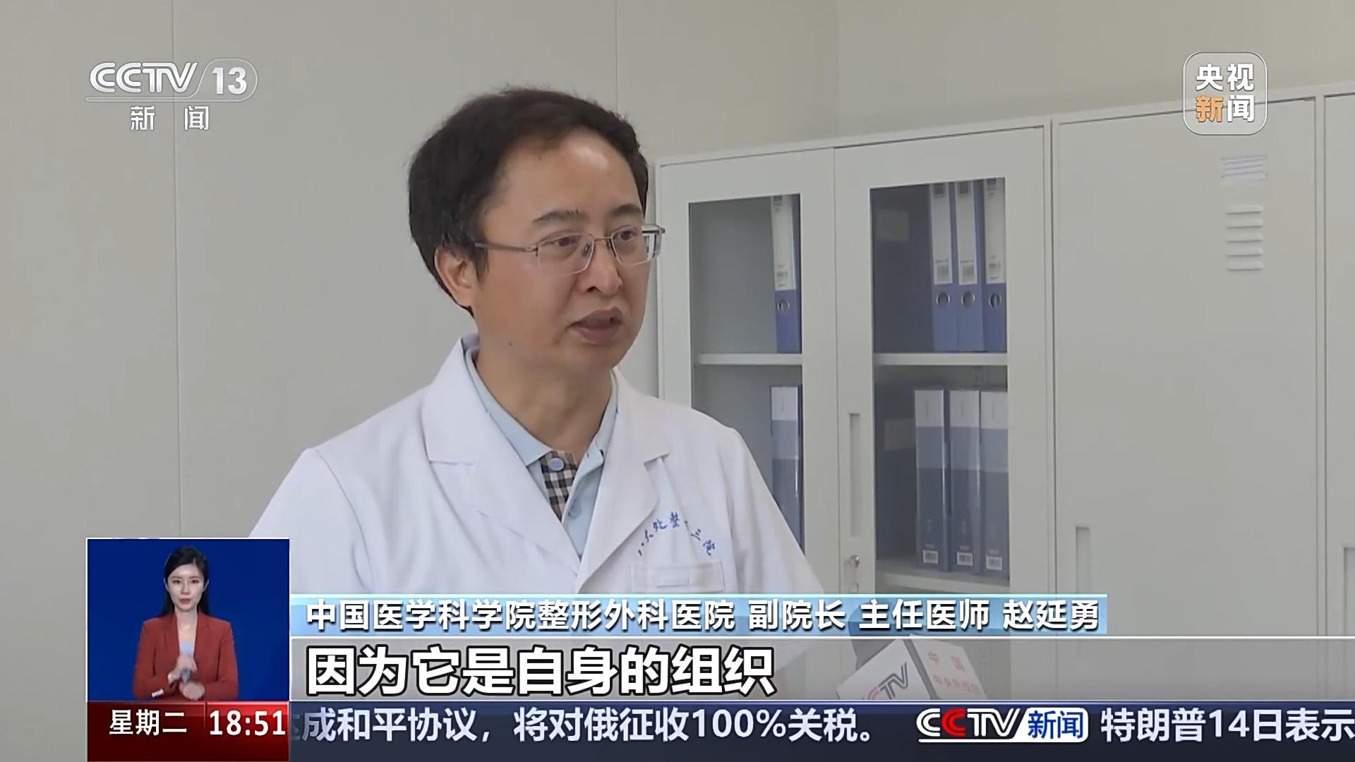 中国医学科学院整形外科医院副院长、主任医师 赵延勇:6周岁的时候小孩的耳朵基本上已经达到成人80%左右了,小孩的肋软骨具备了做耳廓支架的基本需求。因为肢体肋软骨是自身的组织,它也跟着一起生长发育,所以说肢体肋软骨造耳朵,它也跟着身体同步生长,所以说即使到了成年之后,耳朵外形和正常的耳廓外形基本上大小还是一样的。