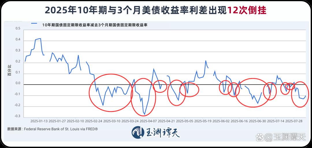 但今年的情况有些不同,按10年期与3个月国债利差,收益率曲线频繁倒挂。到现在,已经出现12次倒挂。