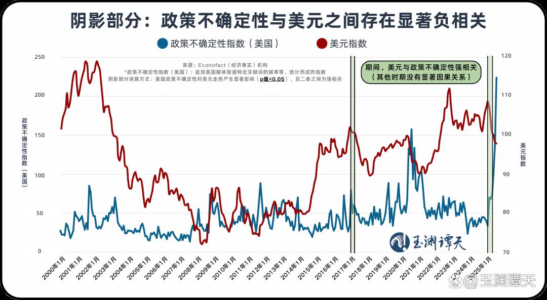 根据美国经济研究机构伊科法克(Econofact)作出的判断,这次美元之所以也同步走弱,是因为美国政策的不确定性。