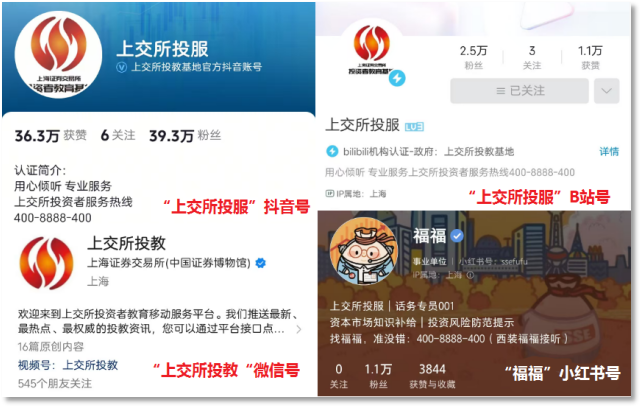 监管机构、自媒体平台一直高度重视打击非法证券期货活动。据了解,目前上交所投资者服务部已在抖音、B站、视频号、小红书等自媒体平台开设投资者服务账号(各平台搜索“上交所”“上交所投服”或“上交所投教”),日常更新防范非法证券期货活动信息,提供投资基础知识、投资方法、政策规则信息服务,并通过在线直播方式为投资者办事。