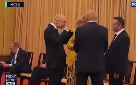 拉夫罗夫在普京下榻住所询问“拉布布在哪”,俄财长现场比划造型。