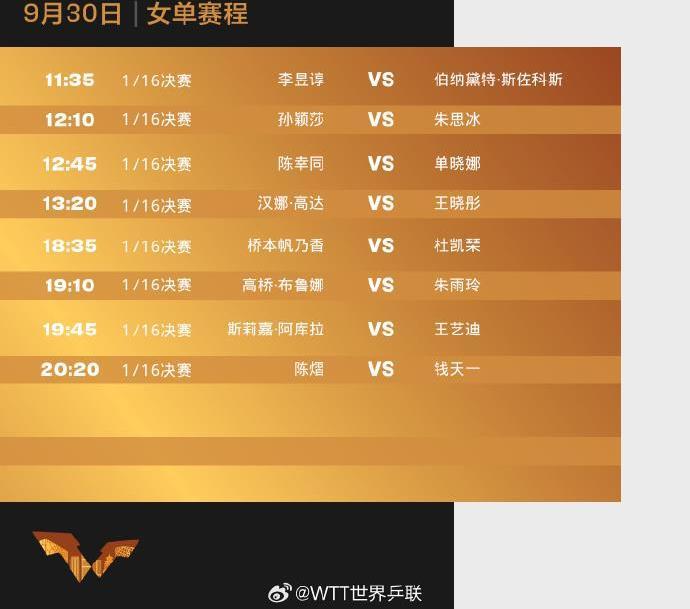 具体赛程如下,一起为国乒选手加油!