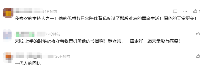 各界人士及听众纷纷通过社交平台表达对他的悼念之情,愿其“一路走好”。