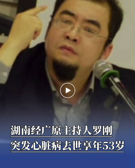 10月13日,记者从湖南经广原主持人启华处得知,湖南经广原主持人罗刚,于2025年10月10日22时 58分因突发心脏病不幸与世长辞,享年53岁。启华介绍,罗刚追悼会今日下午在长沙明阳山举行。