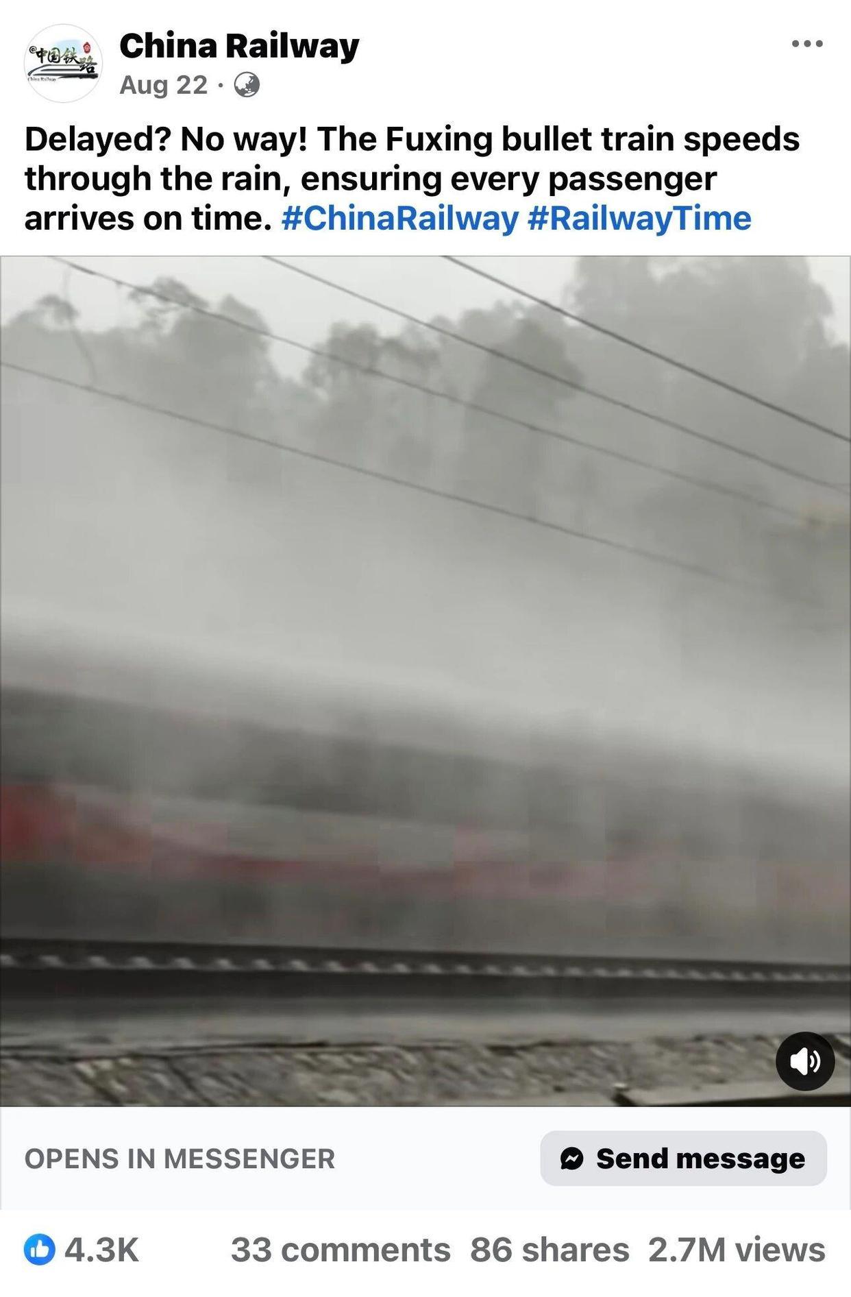 近期,复兴号列车在雨中疾驰的画面,引发海内外网友惊叹。
