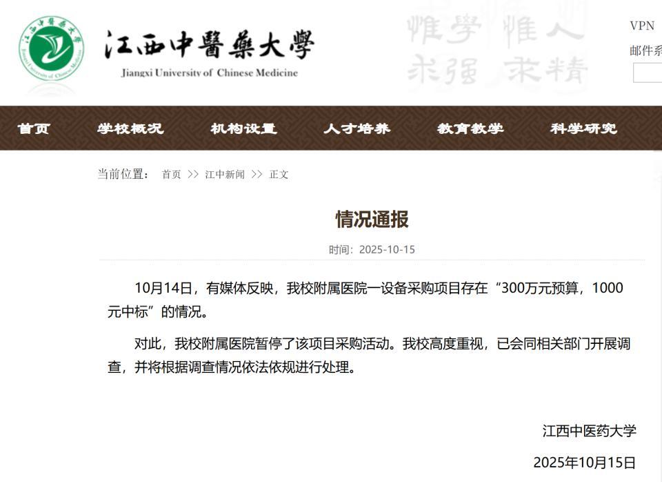 10月15日,江西中医药大学发布情况通报,如下: