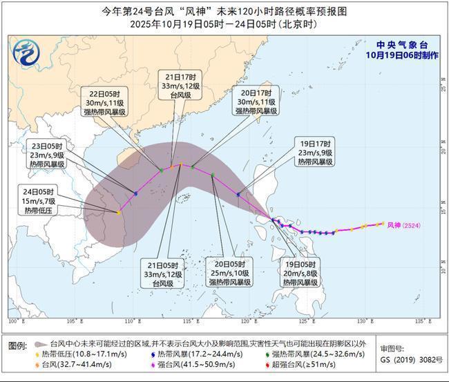 大风预报:受冷空气和“风神”的共同影响,19日8时至20日8时,台湾海峡、巴士海峡、南海北部和中部、西沙群岛、中沙群岛及黄岩岛附近海域、北部湾、琼州海峡、东海西部、浙江沿海、台湾沿海、福建沿海、广东沿海、广西沿海、海南岛沿海将有6-8级大风,阵风9-10级,其中东海西部、浙江沿海、台湾海峡、台湾西部沿海、福建沿海、广东东部沿海和南海东北部的部分海域风力有9-10级,阵风11-12级。