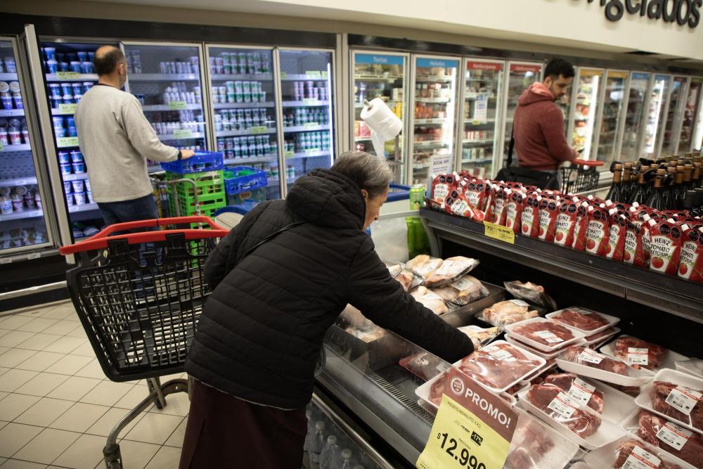 9月25日,在阿根廷首都布宜诺斯艾利斯,顾客在一家超市的冷柜前选购促销肉类。新华社发(马丁·萨巴拉摄)