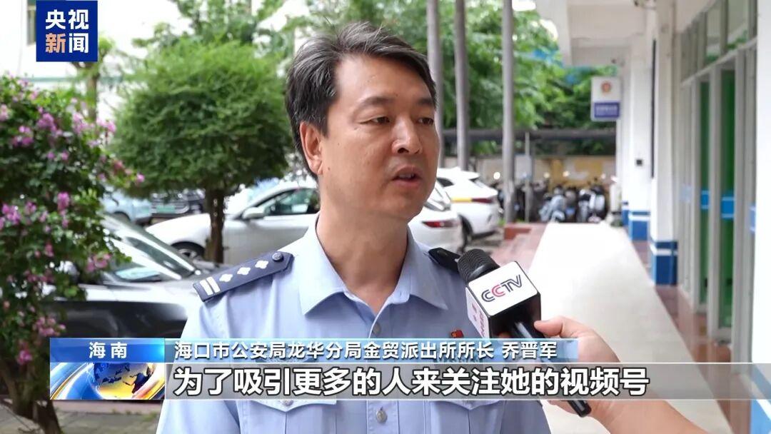 海口市公安局龙华分局金贸派出所所长 乔晋军:主要是为了流量,能够增加粉丝,所以借此机会就发布了这么一个视频,为了吸引更多的人来关注她的视频号。