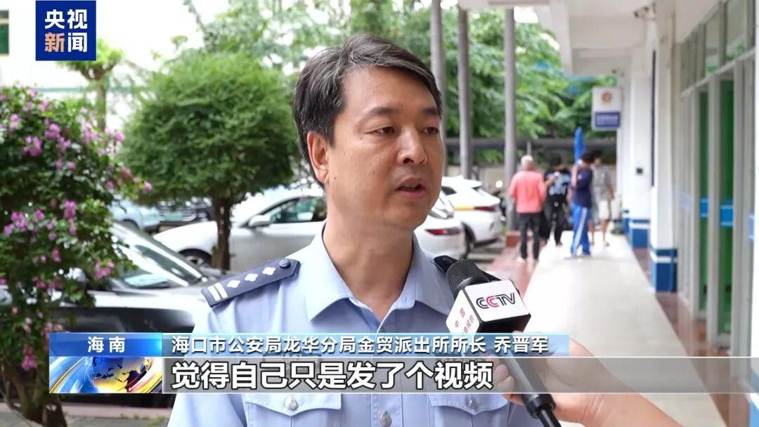 海口市公安局龙华分局金贸派出所所长 乔晋军:她当时觉得挺惊讶,觉得自己只是发了个视频,公安机关就让她到派出所,但是我们讲清楚利害关系,讲清楚法律知识以后,她也挺配合我们工作的。