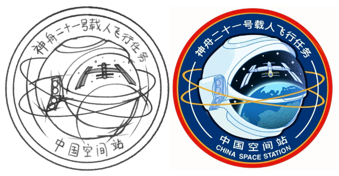 色彩系统同样经历优化。外圈采用国旗红黄配色,象征国家荣誉;内圈深蓝代表浩瀚宇宙;白色飞船与空间站在星光中精准对接,下方蓝白相间的地球倒映于头盔之中,任务编号“21”以明黄色点缀,强化识别度。整个设计摒弃复杂渐变,转向高辨识度的平面化表达,确保在不同媒介中都能清晰传播。