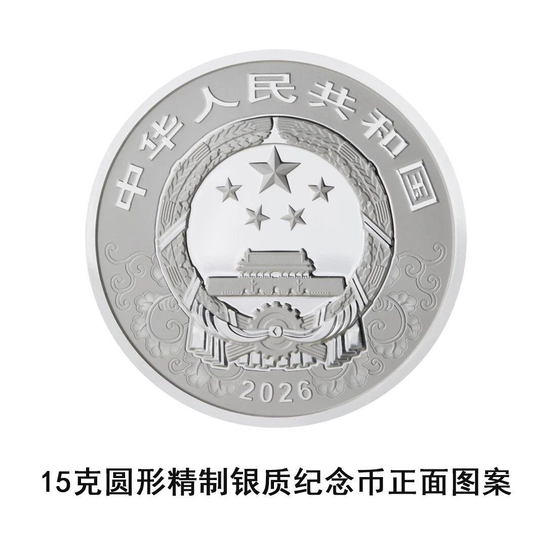 15克圆形银质纪念币为精制币,含纯银15克,直径33毫米,面额5元,成色99.9%,最大发行量250000枚。