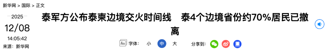 泰军方公布泰柬边境交火时间线,泰4个边境省份约70%居民已撤离