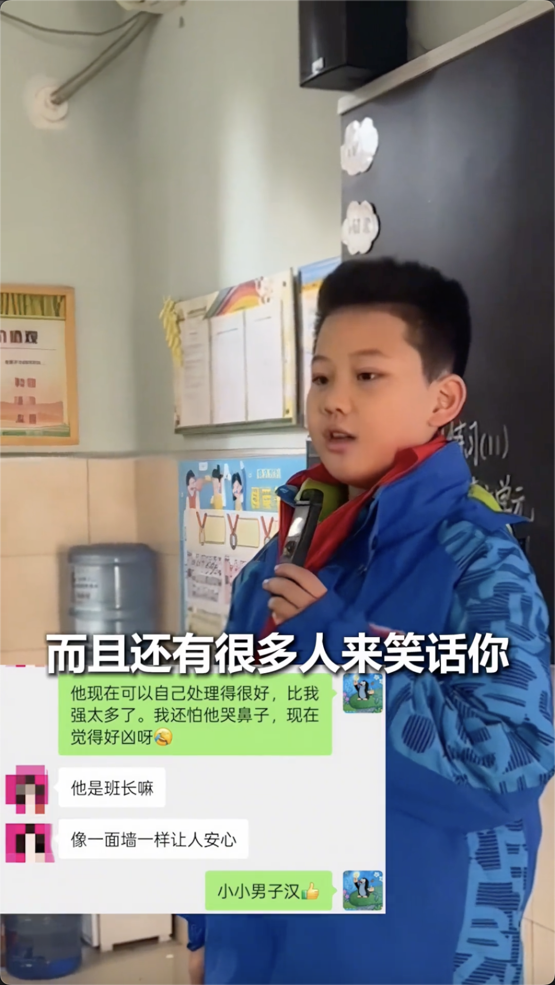 张女士看完视频后,眼泪差点流下来“孩子干了一件,我四十年都不敢干的事,你太棒了!”据老师说,当时嘲笑儿子的同学听后,都向他真诚道歉。
