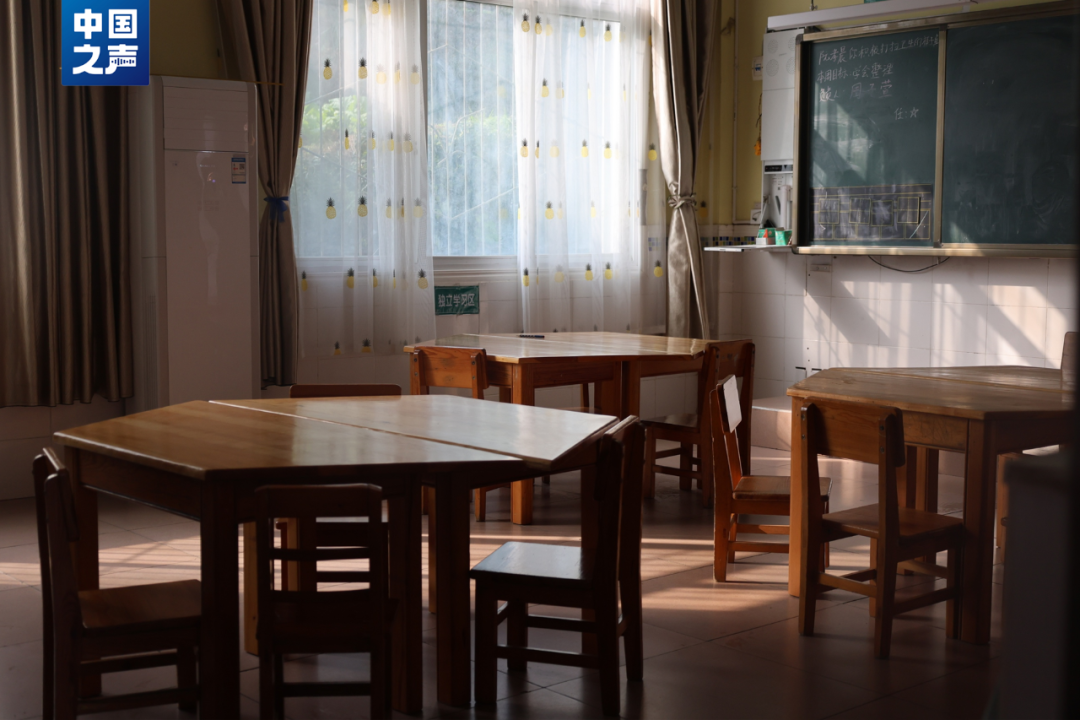 当时学生少,一个教室不过七八个孩子,坐得稀稀拉拉,为了让学生更多参与课堂讨论,他们的课桌被设计成特殊的样式——可以拼在一起变成严丝合缝的大桌。