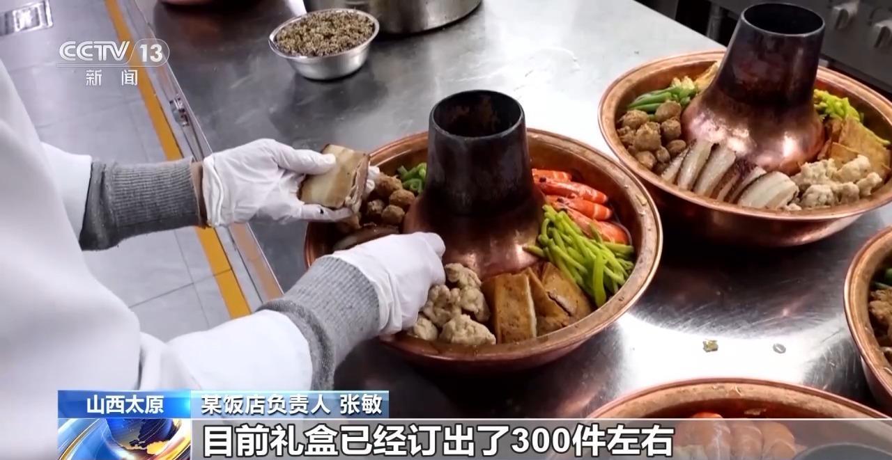 某饭店负责人 张敏:里边是现做的招牌菜,像太原人喜欢的烧肉、炸丸子、烧鸡之类的都有,目前礼盒已经订出了300件左右。