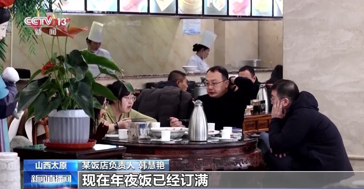 某饭店负责人 韩慧艳:我们现在有36个包间,大厅有13个散台,现在年夜饭已经订满,很多家庭从2025年11月份就已经开始预订了。