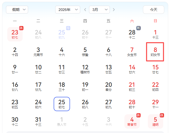 据中国政府网 再过不久就是妇女节了,女职工们将迎来春节后的第一个假期。然而,打开日历却发现,今年3月8日竟然在周日。