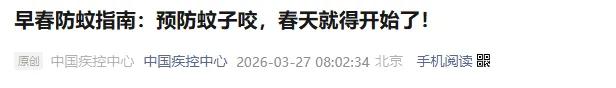 3月27日,中国疾控中心发文提醒:预防蚊子咬,春天就得开始了。