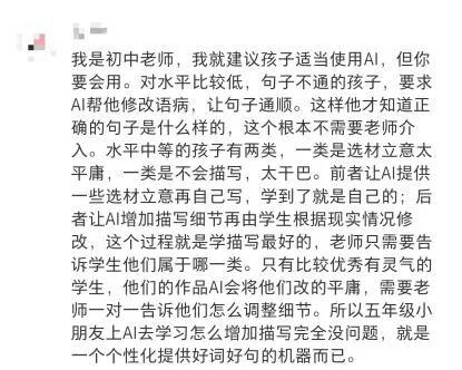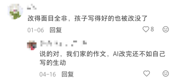 ●有的担忧AI沦为“高级抄袭”工具,孩子们没有真正学习到语文知识,反而形成依赖;